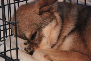 Today I still feel very tired. My person started playing with jars again. This time she was putting beans in the them. So I tucked my nose under my paw and went to sleep for a very long time. It's good to be home.